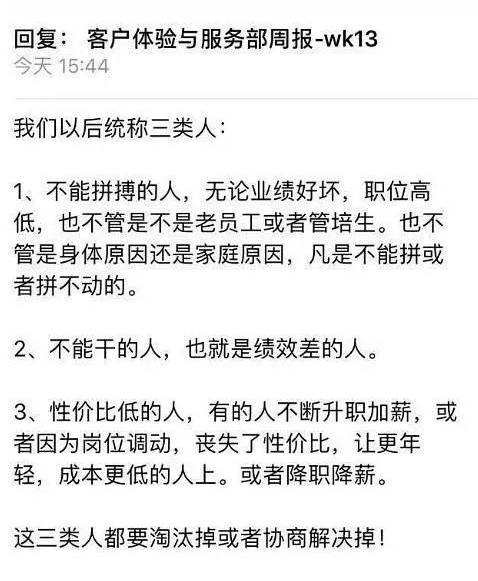 近日,就有京东员工在网上爆料,称京东发布内部邮件,要求坚决淘汰“三类人”。虽然京东方面认为此事系片面解读,但也暗示了公司裁员一事确实存在,并称“目前京东倡导创业和拼搏精神,希望在公司营造出一个靠公平的勤劳付出而不是以各种借口混日子的环境”。