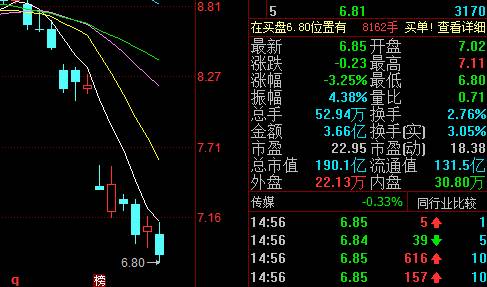 今日,华谊兄弟股价继续下跌,目前已经跌破7元,截止收盘,股价跌至6.85元/股。
