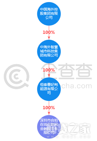 其中,合拍在线运营公司深圳市合拍在线互联网金融服务有限公司于今年3月20日发生股权变动,原股东深圳市合拍电子商务有限公司(原持股比例96.63%)、深圳市中科智资产管理有限公司(原持股比例3.37%)完全退出,新进的唯一股东为中国海外控股集团旗下孙公司恒泰曹妃甸能源有限公司,对公司100%持股。根据官网介绍,中国海外控股集团成立于1993年,总部设在北京,是“中央管理的国有企业”。