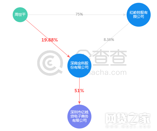 其中,红岭创投电子商务股份有限公司旗下运营深圳P2P平台红岭创投。深南股份为上市公司,实控人系红岭创投董事长周世平。今年4月24日,亿钱贷法人由韩影变更为闫梓,深南股份副总裁、投资派(深南股份旗下互金平台)总经理。