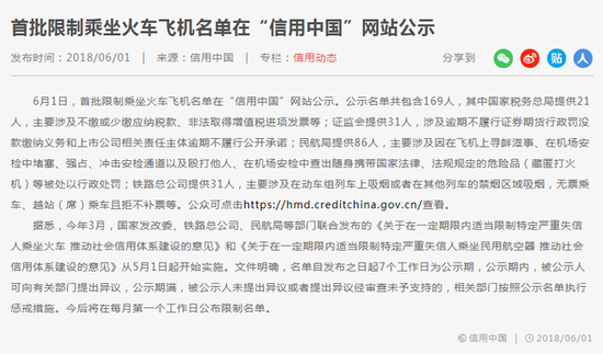网络整理 2021-03-22 16:426月1日上午,信用中国网站公布了第一批特定严重失信人的名单,严重失信人在一定期限内将不能乘坐火车与飞机等交通工具。