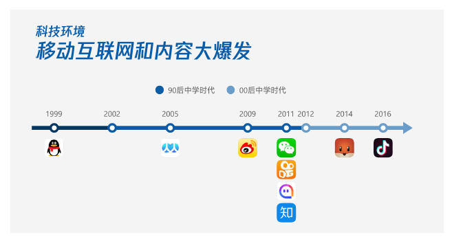00后中学时期,移动互联网迅速发展,众多社交平台涌现,相比90后,00后的上网时间更多、互联网虚拟消费比例更高。