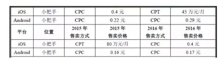 墨迹天气此前披露的招股书显示,墨迹天气所提供的平台导流主要是通过CPC计价模式(即点击一次就扣费)和CPT模式(按时长收费),而广告售卖的价格在逐年上涨,且因用户平台不同价格略有区别。以IOS为例,其CPT模式收费价格在2014年与2015年分别为45万元每月和80万每月。