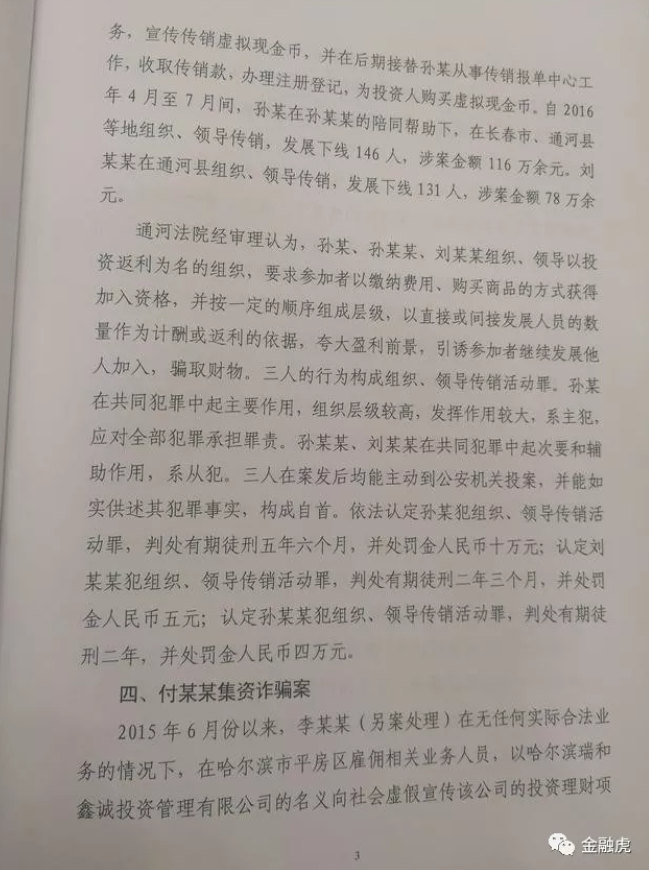 12月20日,天津市南开区人民法院,对原天津望洲商务信息咨询有限公司销售经理葛某某进行了依法判决。判决书显示,葛某某因非法吸收公众存款罪,被判处有期徒刑3年,处罚金5万元。