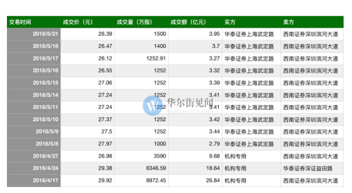 网络整理 2021-03-22 16:52今天(21日),万科A再现大宗交易,买卖双方与此前一致,西南证券深圳滨河大道卖出3.95亿元,华泰证券上海武定路接盘,成交价格为26.39元。