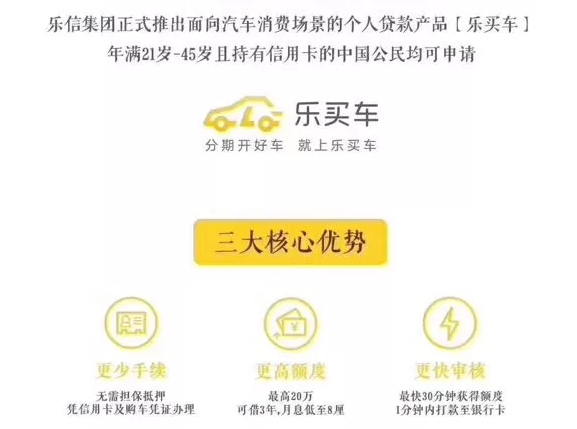 网络整理 2021-03-22 16:535月17日,上市公司乐信集团推出了汽车金融服务产品——乐买车,正式进军汽车金融领域。根据乐买车的宣传海报,年龄在21岁至45岁且持有信用卡的中国公民均可申请。