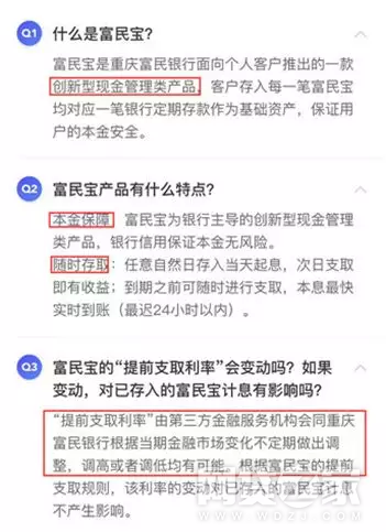 但重庆富民银行回应,这个产品不是银行理财产品,是所谓的“创新型现金管理类产品”。