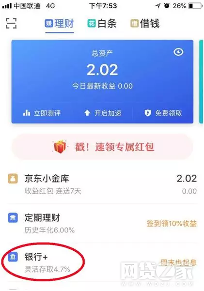 与此同时,APP进入后第一个页面上的银行+产品介绍,昨晚及之前一段时间,基金君在京东金融上看到的是“活期4.7%,当日起息”。