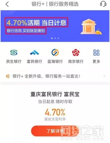 11日晚8点钟左右,基金君再次进入的时候,银行+对应的却是“灵活存取4.7%”