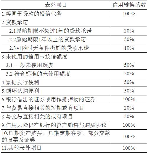 表外项目信用转换系数
