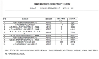 北京市住建委官网显示,王四会名下的昊园恒业和梦想大熊在去年11月投诉榜排名居前。