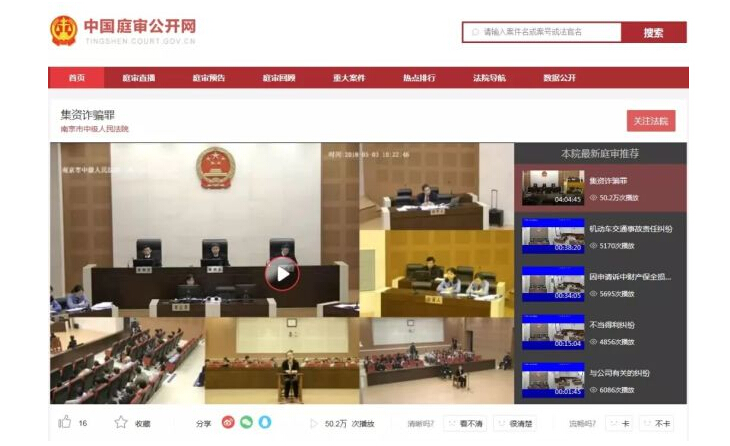 转载请标注:信息网——南京中院审理185亿集资诈骗案 超52万人看直播