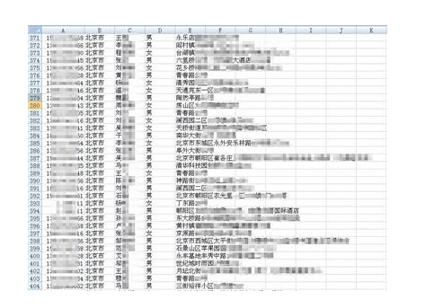 还不到15分钟,陈京宏就通过QQ给记者发来一份Excel表格,内有5000条信息。和截图内容一样,这份表格包括姓名、电话、性别和地址,但没有订餐日期。包括朝阳、密云等区在内,北京16个区的数据都有涉及。
