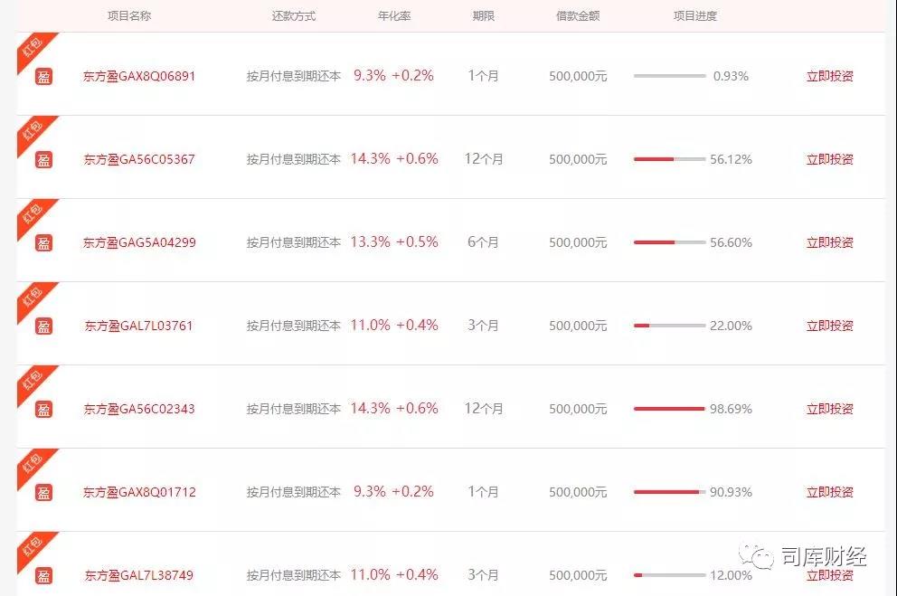 截至发稿,东方盈系列产品仍然在销售。以“东方盈GAE8613219”产品为例,起投金额2000元,项目金额为50万元,预期年化收益率为11.0%+0.4%,投资期限3个月。