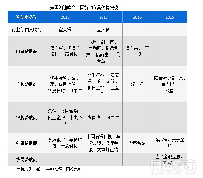 不过,有意思的是,据网贷之家的统计,从2015年开始,连续四年远赴美国朗迪峰会的中国赞助商的只有宜人贷和信而富。