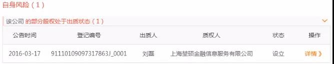 对于股权纠纷,记者从天眼查看到,公司部门股权处于出质状态。