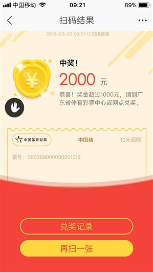 如果奖金不超过1000元,可以即时到账,直接转入个人的支付宝账户,免去兑奖的麻烦。