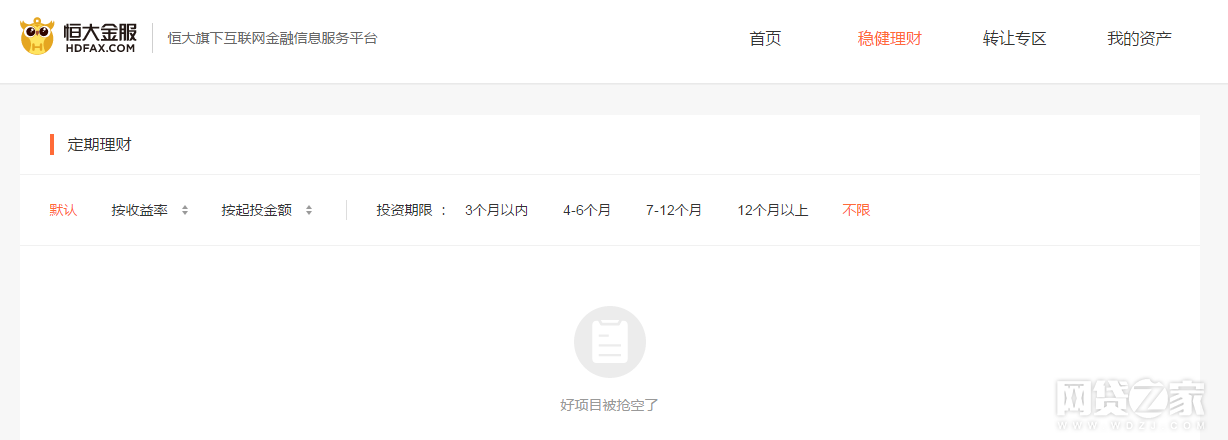 网络整理 2021-03-22 17:23网贷之家讯 近日,有自媒体爆料称,恒大金服除了保留基金代销产品外,自年初开始停发线上定期产品。3月29日下午,在恒大金服官网理财频道中,定期理财产品项下是空白的,处于无标的可投的状况。