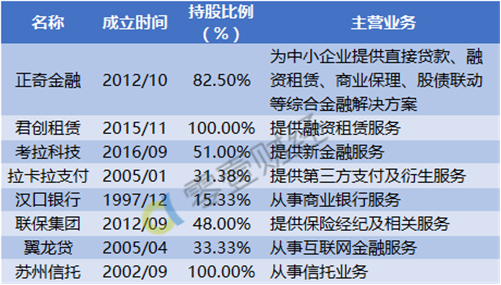 a)正奇金融。截至2017年12月31日,正奇金融贷款余额为58.74亿元,同比增长8.62%;公司发放小额贷款共计32.32亿元,同比增长2.6%。截至2017年12月31日,正奇金融融资租赁业务期末应收租赁款余额为人民币49.86亿元,同比增长44.02%。