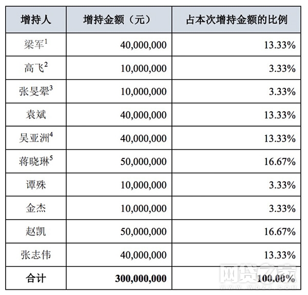 乐视网在2016年11月11日发布公告称,公司高级管理人员、核心骨干梁军、高飞、张旻翚、吴亚洲、蒋晓琳、袁斌、 谭殊、金杰、赵凯、张志伟基于对公司未来发展前景的信心以及对公司股票价值的合理判断,计划在未来六个月内(自2016年11月11日起至2017年5月10日止),通过深圳证券交易所交易系统允许的方式(包括但不限于集中竞价和大宗交易)增持公司股份,增持总金额不低于3亿元人民币,增持所需资金由高级管理人员及核心骨干人员自筹取得。