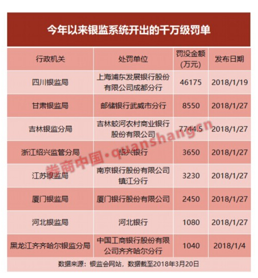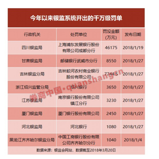仅3个月银监罚单就开出800多张 最高罚4.6亿