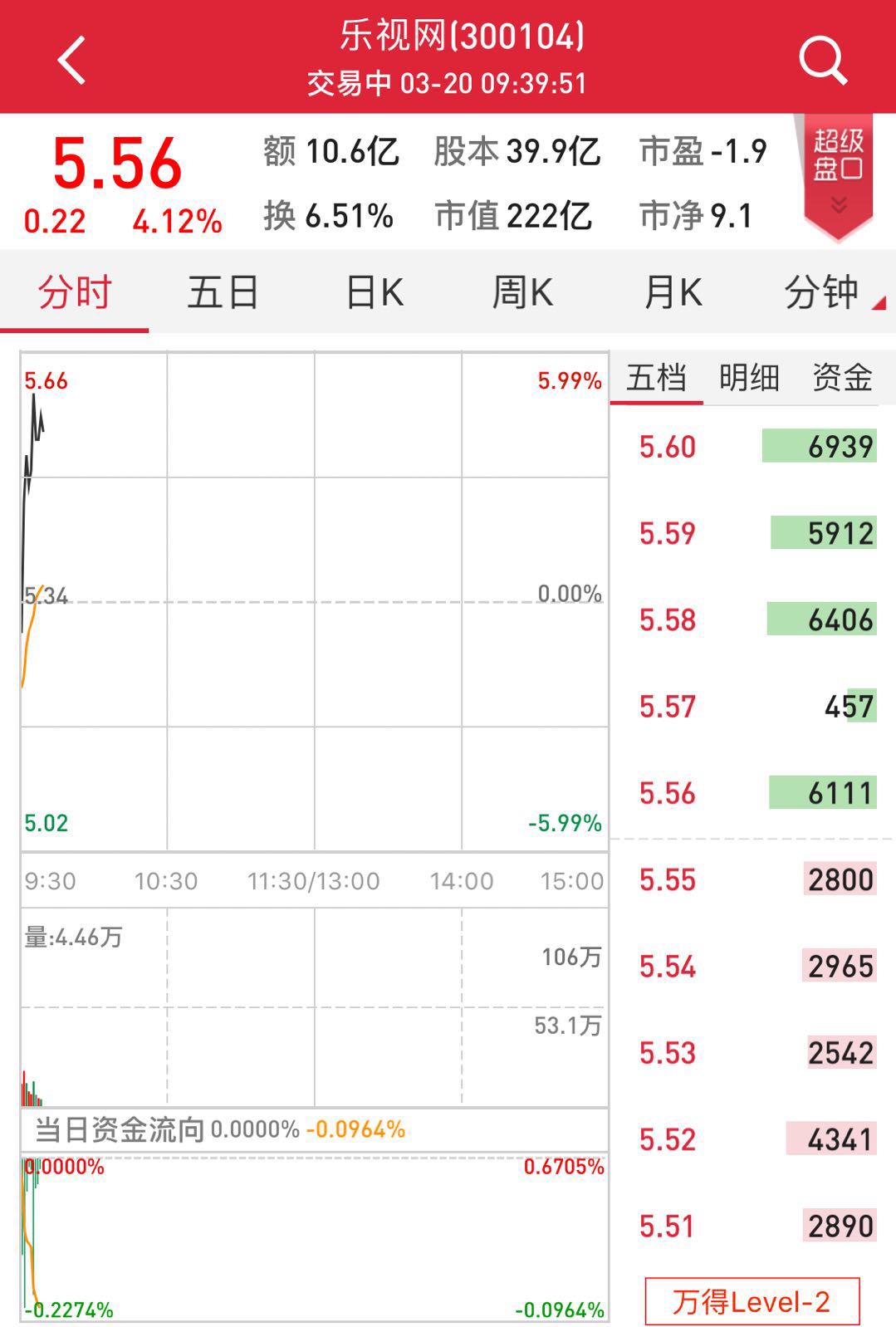 网络整理 2021-03-22 17:323月20日,乐视网开盘再跌停,这已是其复牌后第三次跌停。随后迅速翻红,截至发稿,报5.56元,涨4.12%,成交逾10亿元。