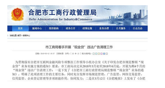 合肥工商局:未来4个月重点清理现金贷违法广告