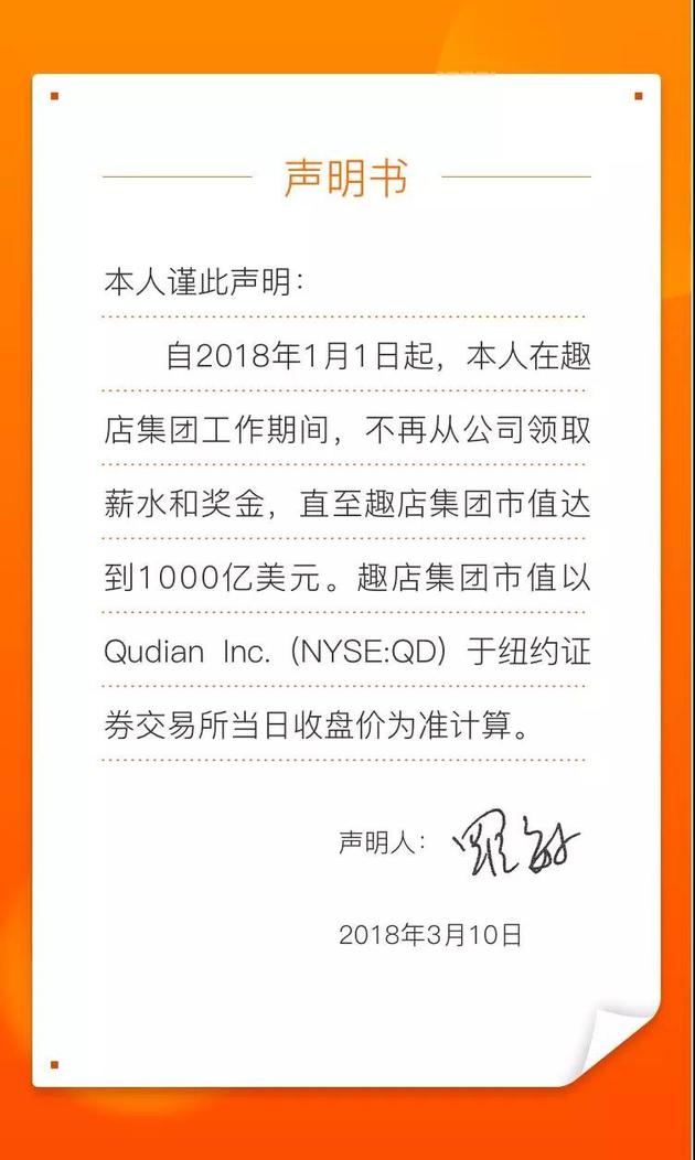 转载请标注:信息网——罗敏:趣店市值1000亿美元前不拿薪水和奖金