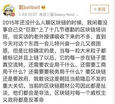 其实现在能挖掘到最早的培训开始于2015年,微博名为“戴bellbell”的网友发微博表示自己曾在2015年还没什么人聊区块链的时候,就“闲着没事”自己交“巨款”上了十几节德勤的区块链培训班,该班是外国讲师授课,但他表示“说实话吸收下来的不多。”
