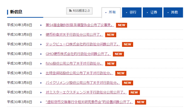 3月8日,日本金融厅公布了7张罚单,罚单涉及的均为虚拟货币交易平台。日本金融厅要求FSHO和bitstation关闭所有虚拟货币交易业务。