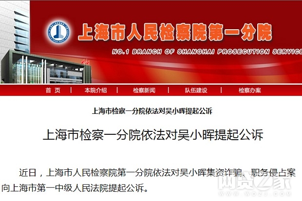 另据上海市人民检察院第一分院官网消息,近日,上海市人民检察院第一分院依法对吴小晖集资诈骗、职务侵占案向上海市第一中级人民法院提起公诉。