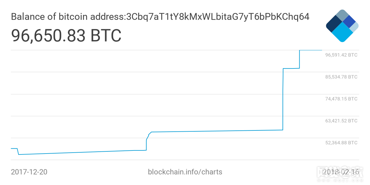 比特币地址为3Cbq7aT1tY8kMxWLbitaG7yT6bPbKChq64的神秘买家在2月9日至12日期间买入比特币,使得其比特币余额从55000枚增至超过96000枚。