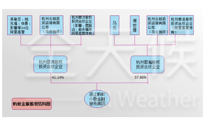 蚂蚁金服股权结构图(由全天候科技作者根据天眼查信息整理)