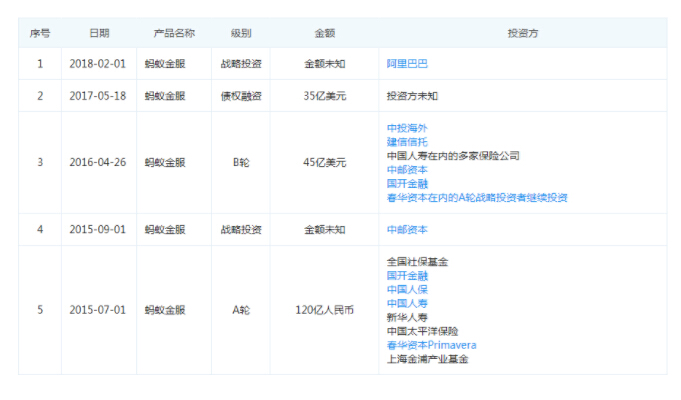 公开信息显示,在阿里巴巴宣布获得蚂蚁金服33%股权以前,后者就已经获得多轮融资,融资总额超百亿美金。