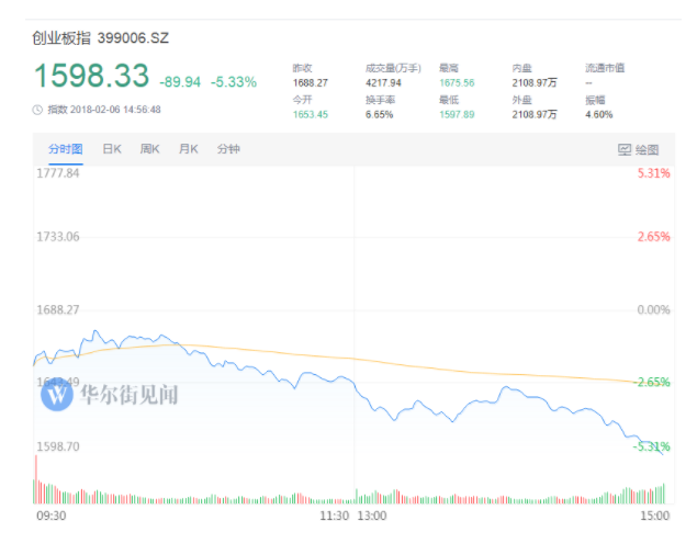网络整理 2021-03-22 17:54周二午后,A股迅速跳水。沪指一度跌3.2%,创2016年7月来最大跌幅,创业板尾盘跌超5%,跌破1600点。