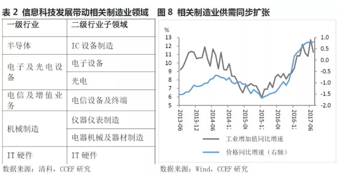 3、物联网、人工智能、云计算等信息科技的发展,将带动直接相关制造业的产业转型升级。半导体、电子及光电设备、电信及增值业务、机械制造、IT硬件等行业将迎来快速发展。