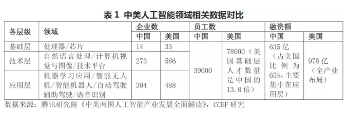 相对而言,软件技术、IT服务子领域的资金流入逐年稳步上涨,平均交易估值自2014年以来年以均1.6倍速增长。就该领域的企业数量和创新能力而言,中美依旧存在较大差距。就投资而言,目前中国软件技术、IT服务领域企业占比33%,而美国同类企业占64%,此外,在技术方面,美国企业更多通过独创性的科技创新取得高估值。以人工智能为例,美国各层级领先中国,尤其是在算法、芯片和数据等产业核心领域,积累了强大的技术创新优势,此外美国风投资金面向全产业投资,而中国主要集中在应用层。