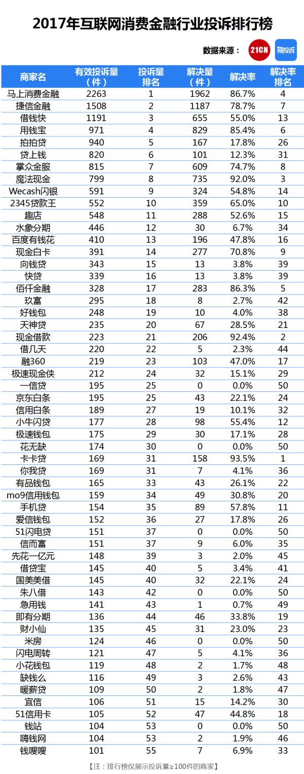媒体盘点2017互联网消费金融投诉黑榜TOP10