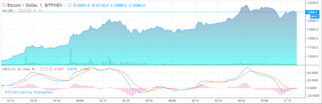 据全球交易量最大的加密货币交易所之一Bitfinex,比特币过去24小时上涨8.2%,重返12000美元大关,截至发稿报12096美元。以太币24小时涨幅12.87%,一度重返1200美元上方,目前报价1194.5美元。瑞波币24销售反弹幅度为7%,目前报价1.2917美元。