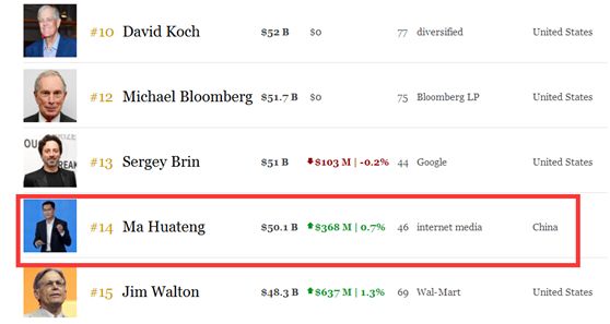 直到目前,马化腾均未被反超。这意味着,马化腾今天成为第一位身家超500亿美元的中国富豪。