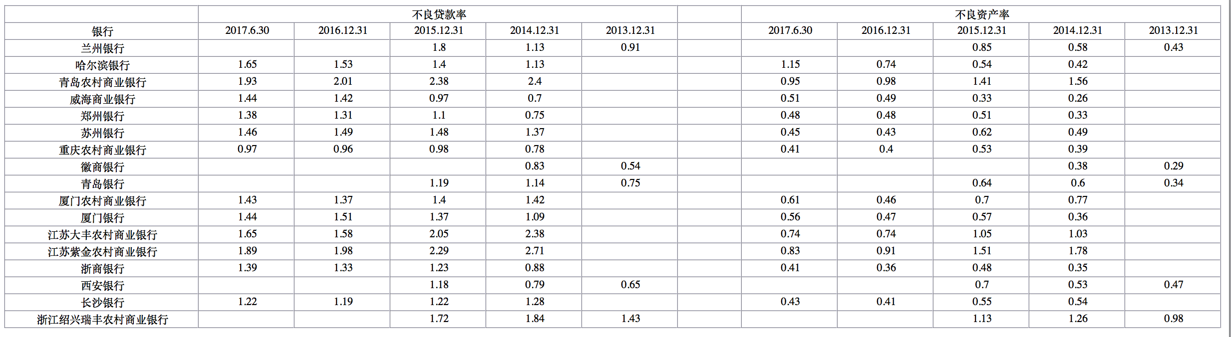 (相关银行的不良贷款率和不良资产率情况)