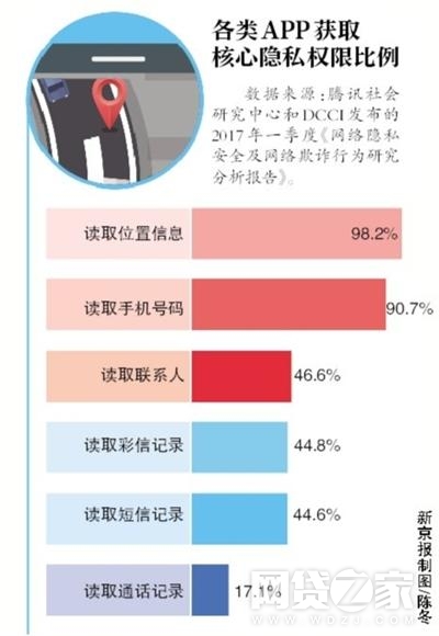 过度调用用户数据的问题由来已久,腾讯社会研究中心与DCCI互联网数据中心联合发布的《网络隐私安全及网络欺诈行为研究分析报告(2017年一季度)》显示,手机APP越界获取个人信息已经成为网络诈骗的主要源头。高达96.6%的安卓应用会获取用户手机隐私权限,而iOS应用的这一数据也高达69.3%。越界获取隐私权限是指手机应用在自身功能不必须的情况下获取用户隐私权限的行为。