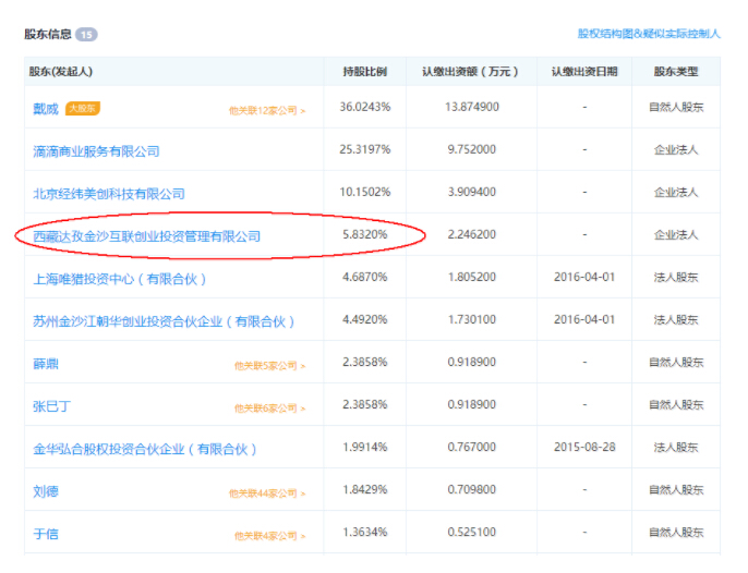 此外,企查查信息显示,朱啸虎旗下的西藏达孜金沙互联创业投资管理有限公司对ofo(北京拜克洛克科技有限公司)持股5.83%,即便按照ofo100亿美元估值出售股份,朱啸虎套现金额也远低于30亿美元。