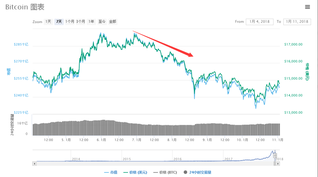 周一,著名的比特币市值计算网站CoinMarketCap,无预警地剔除了韩国比特币交易所的报价,令比特币自17600美元附近一路狂泻,最低跌破14000美元。