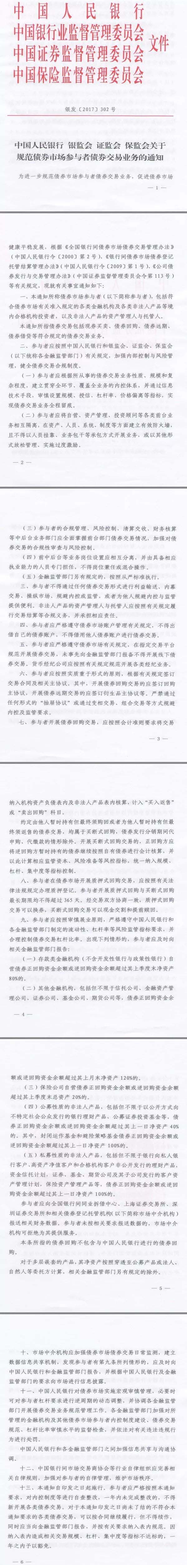 网络整理 2021-03-22 18:211月4日,央行官网挂出近日“一行三会”联合发布的《关于规范债券市场参与者债券交易业务的通知》(银发【2017】302号)(下称302号文),主要从规范债券代持行为、对各类金融机构和非法人产品设定债券正逆回购的余额限制,进一步推进金融机构去杠杆。