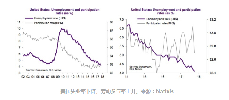 PatrickArtus提及,一旦美国实现了充分就业后怎么办?可就业的中年尤其美国白人已经下降,可就业人口下降会导致未来劳动参与率上升的可能性下降,一旦劳动参与率稳定了,美国就可能实现充分就业。理论上来说,一旦实现充分就业,薪资增长会加速,美联储会更快加息。