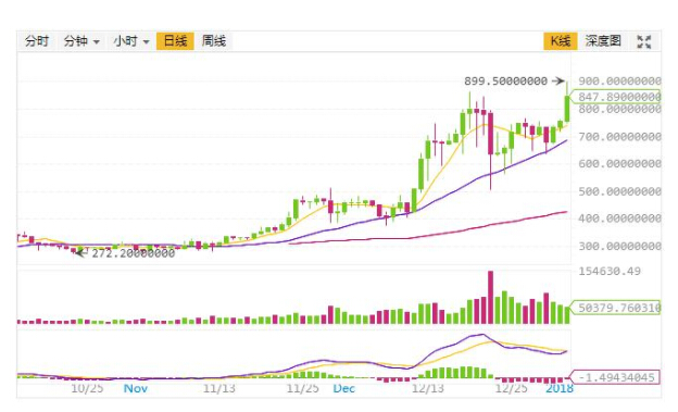 转载请标注:信息网——以太币价格大涨创历史新高 一度逼近900美元