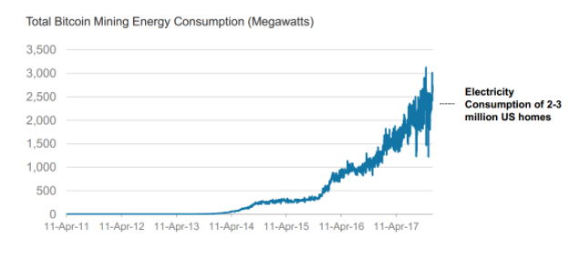 比特币挖矿消耗的能源与日俱增: