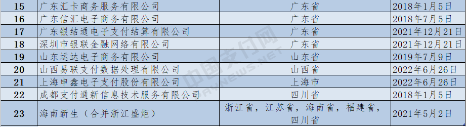 以下为还未收到公开罚单的23家持牌收单机构名单:
