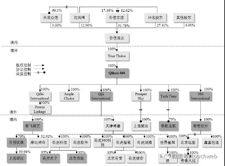 Qihoo 360通过Qiji International间接控制天津奇思100%股权,统一管理天津奇思日常运营。
